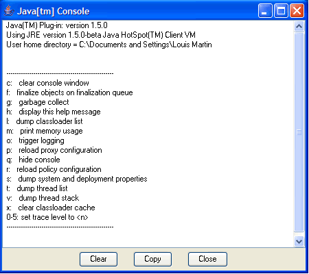 | c: | Java コンソールウィンドウをクリアします。 |
